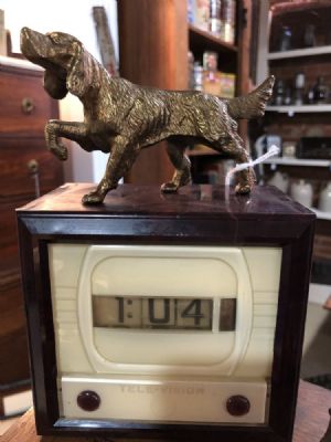 1950's Tele-Vision ClockVery unique 1950's TELE-VISION electric clock with Irish Setter ornamentation on top of the clock. Working condition. Measures 5 1/2 wide and 8 1/4" tall. $75.00