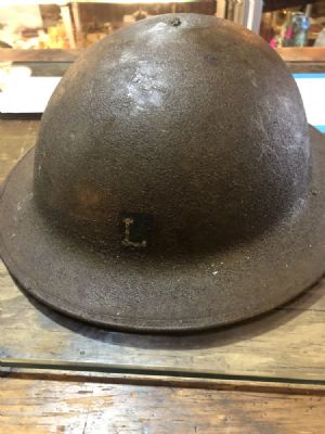 World War 1 U.S. Brodie "Doughboy" Helmet with "L" Insignia. Experts have identified the "L" as a stretcher or "litter" carrier helmet. Very Rare Find. See images for condition. $495.00